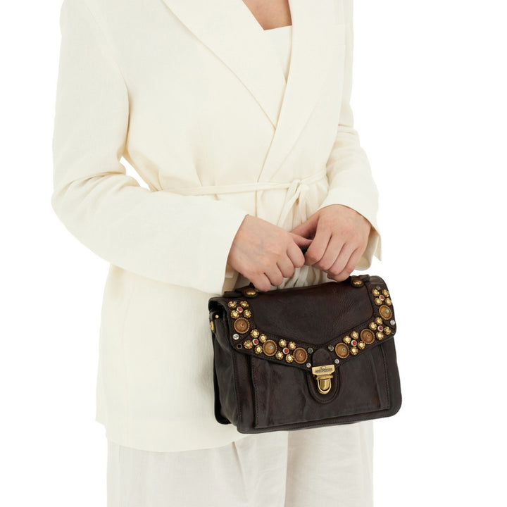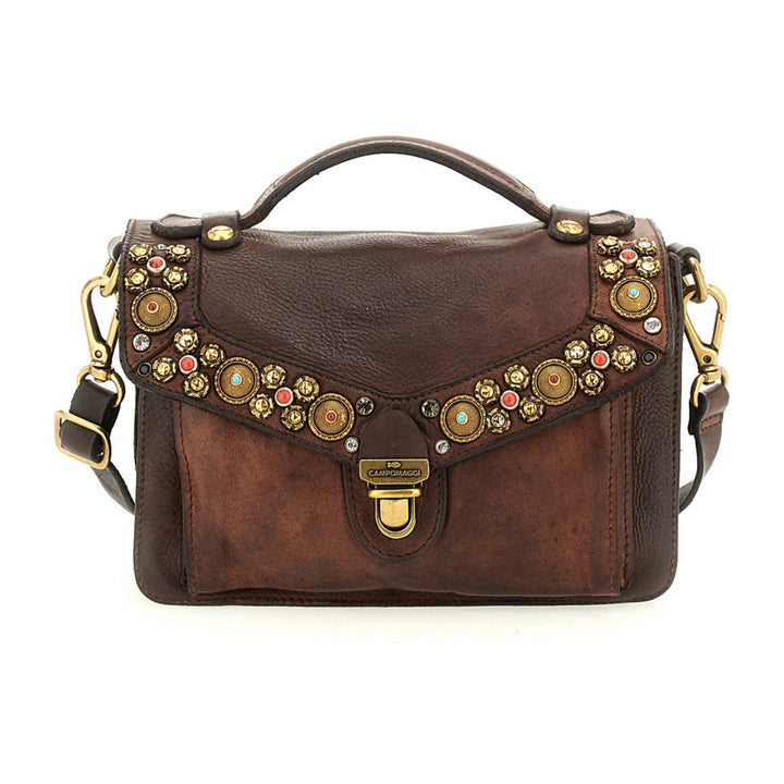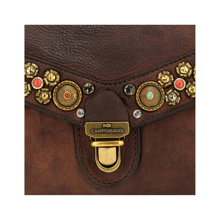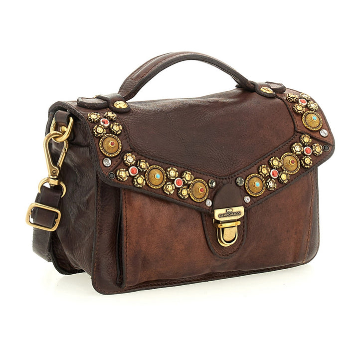 La borsa cartella "Aurora" media di Campomaggi è un accessorio dal carattere deciso e sofisticato, perfetto per chi cerca uno stile unico che unisca artigianalità italiana e dettagli preziosi. Realizzata in 100% pelle di vacchetta tinta in capo, questa borsa si distingue per l’effetto vissuto e le eleganti applicazioni in borchie e strass, che aggiungono un tocco glamour senza rinunciare alla qualità dei materiali naturali.