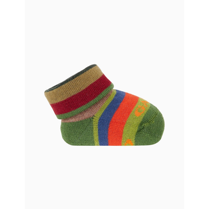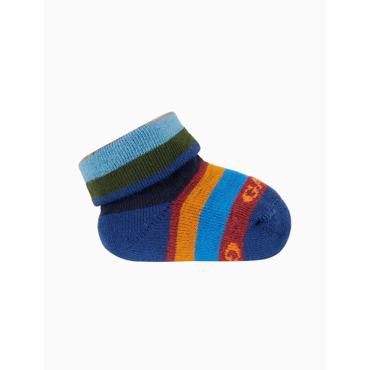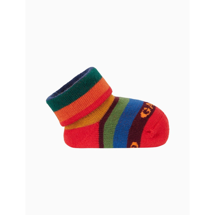 L’iconica fantasia a righe multicolor, firma inconfondibile del brand Gallo, dona un tocco vivace e moderno, ideale per neonati e bambini che non rinunciano allo stile nemmeno nei primi mesi di vita. Il logo Gallo ricamato a contrasto sulla punta aggiunge un dettaglio elegante e distintivo.