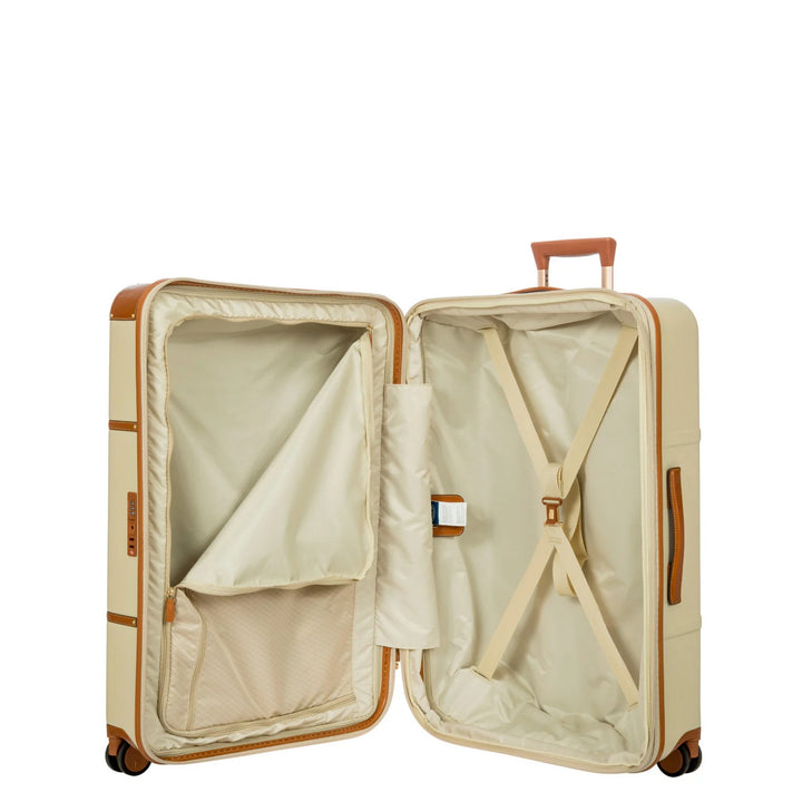 Valigia Bric's modello grande da 76 cm con espandibilità zip. Realizzata in policarbonato riciclato con dettagli in pelle