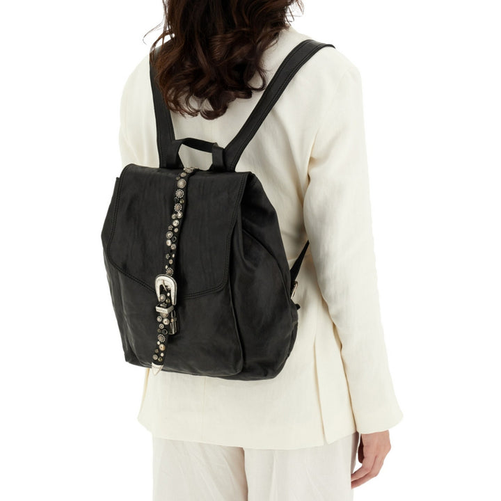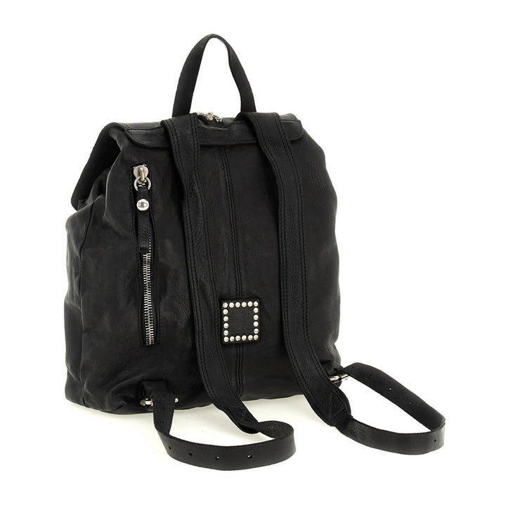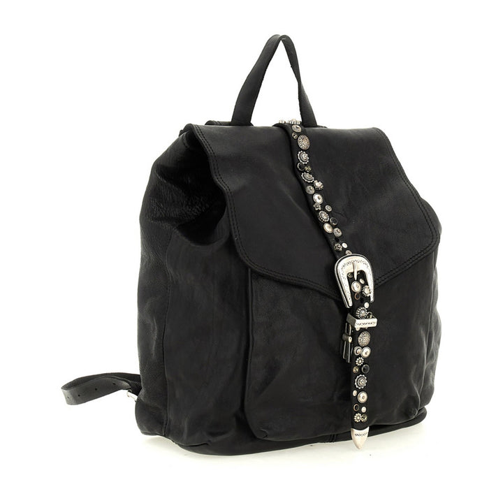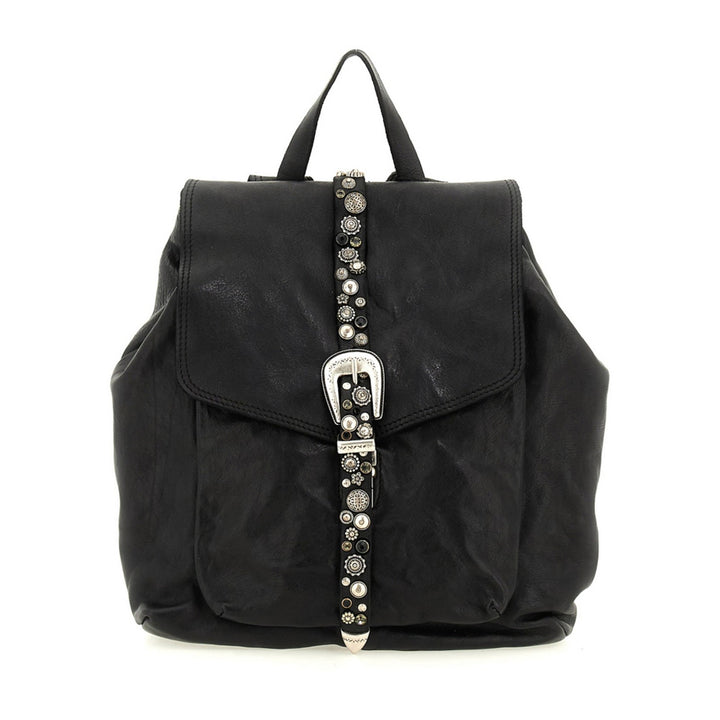 Lo zaino “Berta” di Campomaggi è un perfetto equilibrio tra stile rock, eleganza artigianale e funzionalità quotidiana. Realizzato in 100% pelle di vacchetta tinta in capo, questo zaino si distingue per i suoi dettagli in borchie e strass, che donano un tocco luminoso e deciso, senza rinunciare al fascino autentico del Made in Italy.