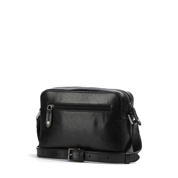 La parte frontale presenta una pratica tasca con chiusura a zip, perfetta per l’accesso rapido, mentre sul retro è presente un’ulteriore tasca con zip per maggiore sicurezza. La chiusura superiore con zip garantisce la protezione del contenuto. La tracolla regolabile (lunghezza: 120–140 cm) consente di indossarla comodamente a spalla o a tracolla, adattandosi a ogni esigenza.
