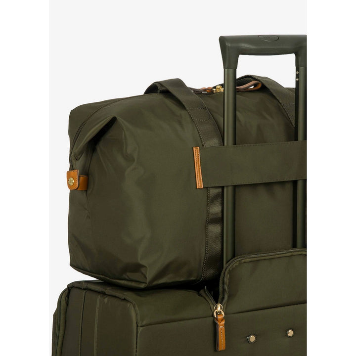 Il borsone 2 in 1 misura media della X-Collection è realizzato in morbido tessuto riciclato, leggero, robusto e impermeabile. La tasca interna con zip è staccabile e può diventare una pratica trousse o mini bag grazie alla tracollina in dotazione; è possibile inoltre riporre al suo interno l’intero borsone piegato. Le maniglie rendono il borsone portabile a mano o in spalla. Sul retro è presente una fascia per il fissaggio sulla maniglia del trolley. La forma capiente lo rende particolarmente funzionale. L'apertura principale è dotata di zip con doppio cursore. Impreziosito dai dettagli in vera pelle, segno distintivo di Bric's.
