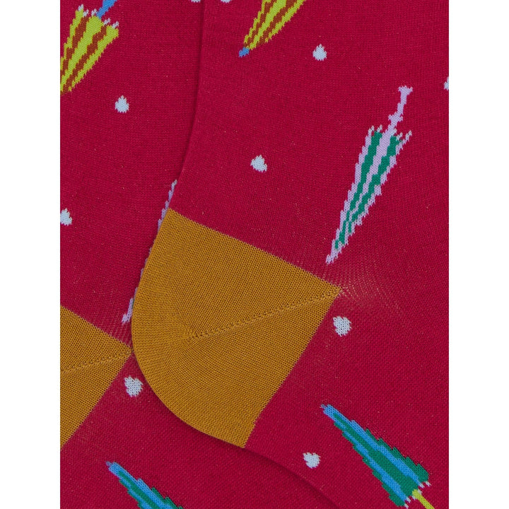 Porta un tocco di allegria e originalità nel tuo outfit con queste calze lunghe da donna in cotone fucsia, impreziosite da una simpatica fantasia di ombrelli colorati. Un accessorio vivace e divertente, perfetto per esprimere la tua personalità con stile.