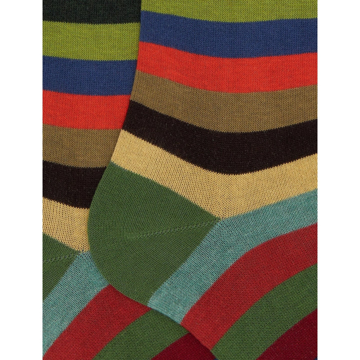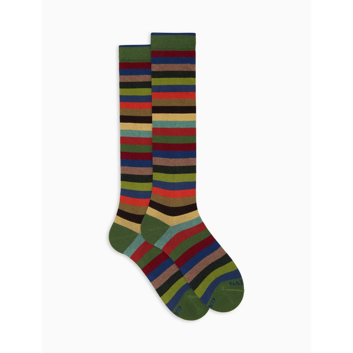La fantasia a righe pari, iconica e sempre attuale, rende queste calze originali ma sobrie, ideali per abbinamenti sia formali che stravaganti. La scritta Gallo ricamata a contrasto sulla punta ne conferma l’autenticità e il pregio.
