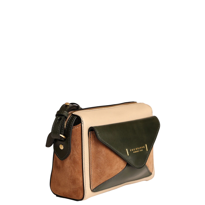 Borsa da donna The Bridge modello tracolla con tasca frontale in stile envelope, realizzata in pregiata pelle liscia e scamosciata