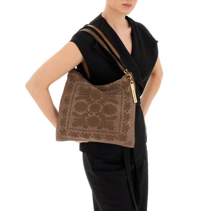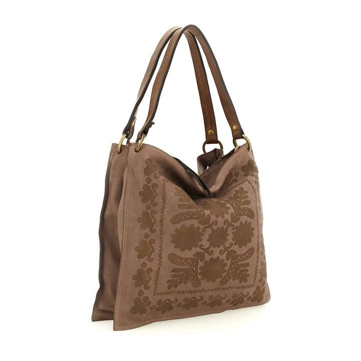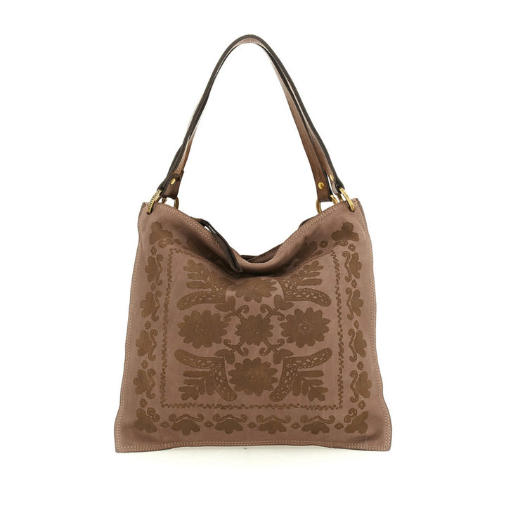 Borsa shopping grande Clara in pelle di vitello con laseratura e vacchetta tinto in capo Caterina Lucchi