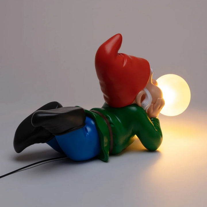 Dai un tocco di originalità e ironia ai tuoi ambienti con la lampada da tavolo Gummy di Seletti, una vera icona di design contemporaneo. Firmata dal celebre brand italiano, questa lampada si distingue per la sua forma unica: un simpatico nano che soffia una bolla di chewing gum, perfetto per arredare con carattere e leggerezza.