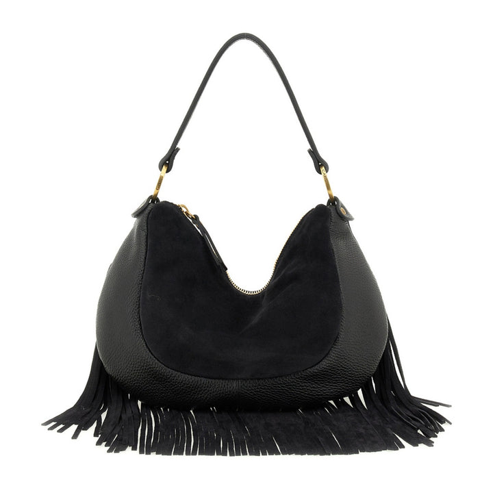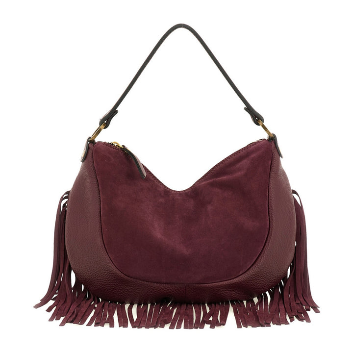 Scopri la borsa a spalla in pelle di vitello Gabs, un accessorio dallo stile raffinato e contemporaneo, perfetto per chi cerca qualità, design e funzionalità in un’unica borsa. Realizzata in vera pelle di vitello scamosciata e vitello martellato, questa borsa si distingue per il suo look elegante e le frange decorative, che aggiungono un tocco boho-chic al tuo outfit.