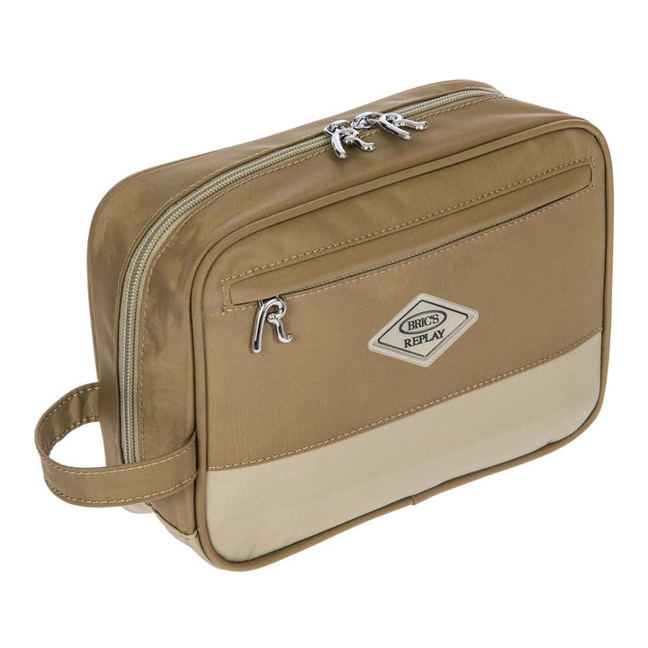 Il Replay Sand Woo Urban Travel Kit di BRIC'S è il compagno ideale per chi viaggia con stile. Realizzato con materiali resistenti e sostenibili, tra cui poliestere riciclato, nylon e dettagli in vera pelle bovina, questo beauty case unisce qualità artigianale, funzionalità e design moderno. Il colore Sand Wood (kaki/beige) conferisce un look elegante e versatile, adatto a ogni tipo di viaggio.