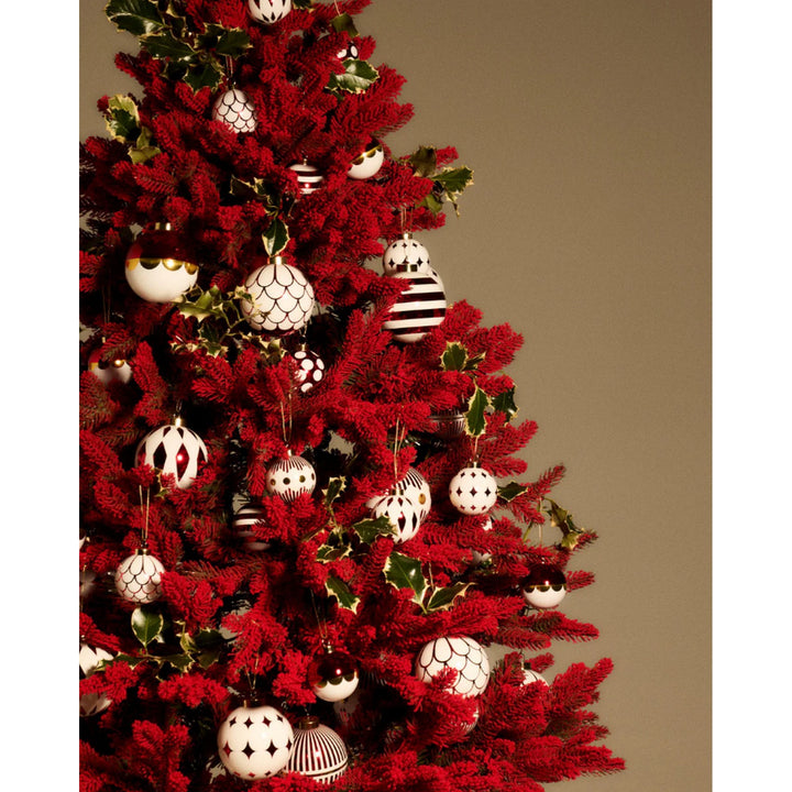 Con la sua estetica raffinata e giocosa, Nika Zupanc reinventa la classica decorazione natalizia attraverso forme geometriche e texture visive d’impatto. Il risultato è una collezione di addobbi sospesi tra sogno e modernità, pensata per chi desidera un albero elegante, ma non convenzionale.