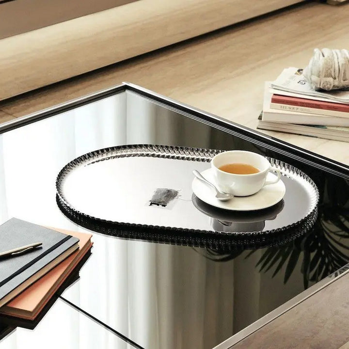 Il vassoio ovale Alessi Pleats è un capolavoro di design contemporaneo firmato Jin Kuramoto, che unisce eleganza, funzionalità e originalità. Realizzato in acciaio inox di alta qualità, è disponibile in finitura lucida o colorata nera.