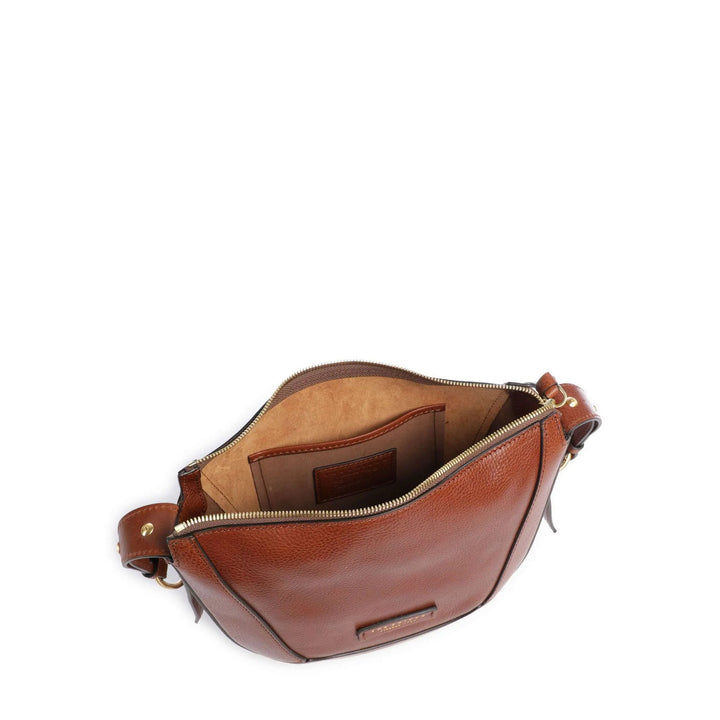 La borsa a tracolla Fedora è l’accessorio perfetto per chi cerca raffinatezza, qualità artigianale e praticità in un solo prodotto. Realizzata in pregiata pelle di vacchetta con grana naturale, questa borsa dal tono marrone caldo si distingue per il suo design sobrio ed elegante, arricchito da dettagli in metallo con finitura oro.