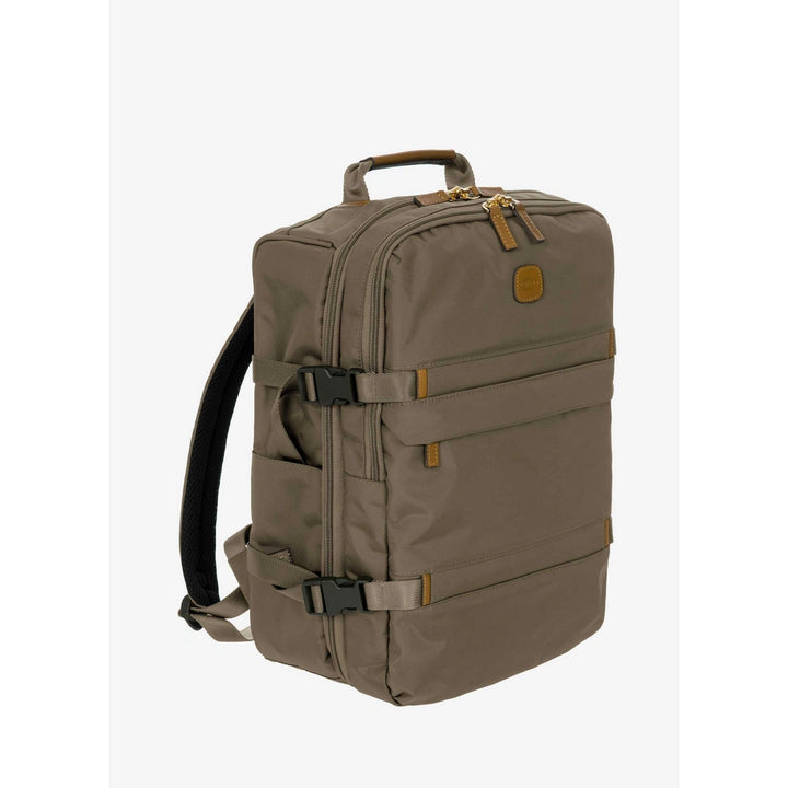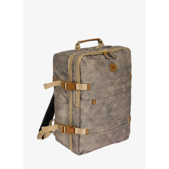 Zaino capiente e organizzato della X-Collection, realizzato in tessuto riciclato. Ideale per accompagnarti nel tuo tempo libero. ESTERNO: una tasca nascosta con zip frontale e due maniglie, una sul lato superiore e una laterale. Sul retro sono presenti spallacci regolabili, imbottiti e traspiranti e uno schienale, traspirante, dotato di una fascia per facilitare l'alloggiamento dello zaino sul manico del trolley e una tasca con zip. INTERNO: 2 scomparti con doppia tiralampo: il primo scomparto, più compatto, si compone sul lato frontale di una tasca con zip e su quello posteriore di un modulo costituito da 4 tasche aperte e due portapenne; il secondo scomparto, ampio e capiente, ha due tasche portatablet con fascia di sicurezza. LATI: 4 fibbie a clip per zaini regolabili disposte due per lato e di una tasca portabottiglia o portaombrello.